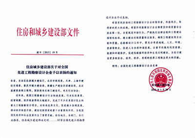 我院荣获“全国先进工程勘察设计企业”称号