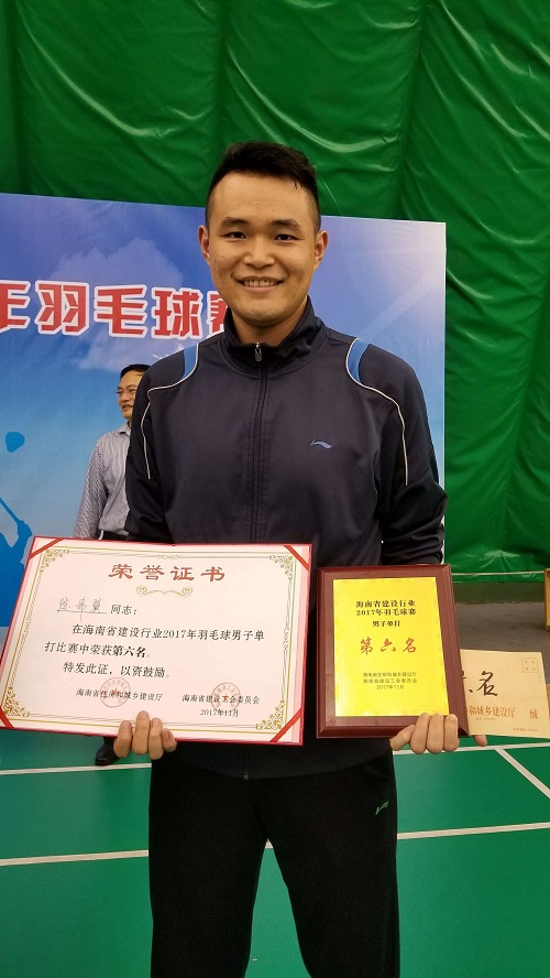 海南省建设行业2017年羽毛球比赛优秀组织奖和