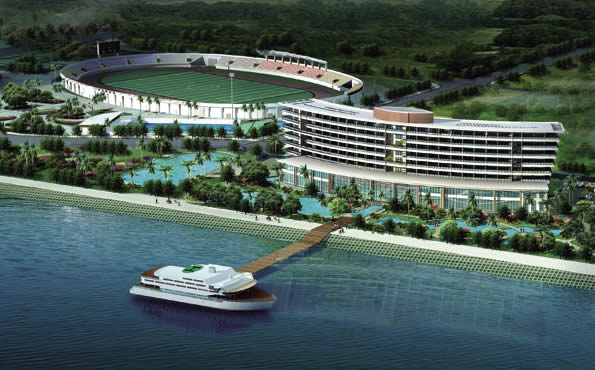 中国羽毛球队冬季训练基地。包括一栋24片国际标准羽毛球场的训练馆(6722.16㎡),一栋运动员公寓(16885.02㎡)。训练馆按国际比赛的标准设计,配置专用灯光、地板、中央空调、并配备有更衣、理疗、体能训练、办公等辅助用房。可通过器材转、水疗中心等配套设施。除了满足国家羽毛球队冬训需要外,平时也可作为酒店对外营业。所有客房均朝河景。
